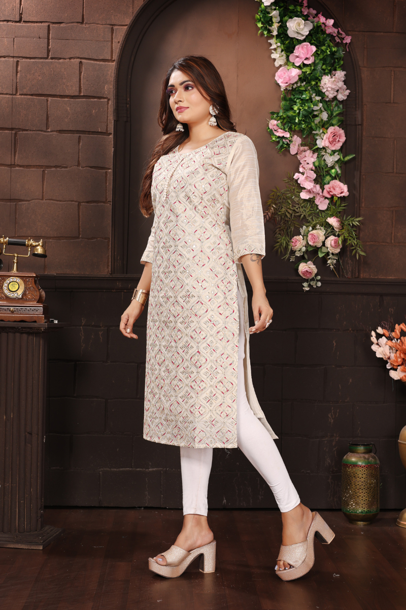 Shine with timeless elegance in the Noor-e-Tissue Kurti, beautifully crafted on premium tissue fabric and drenched in intricate full embroidery. Every thread tells a story of tradition, luxury, and finesse – making it the ultimate showstopper for festive and special occasions.