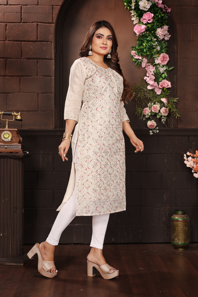 Shine with timeless elegance in the Noor-e-Tissue Kurti, beautifully crafted on premium tissue fabric and drenched in intricate full embroidery.