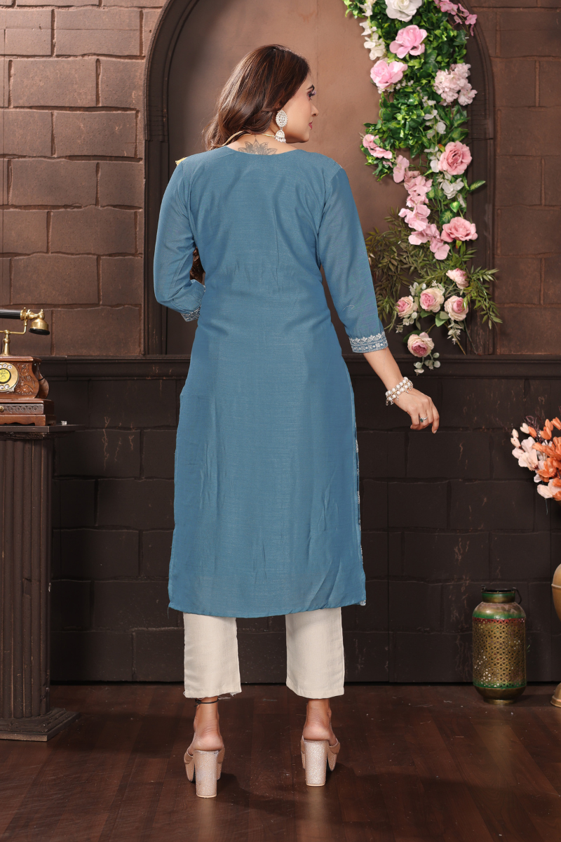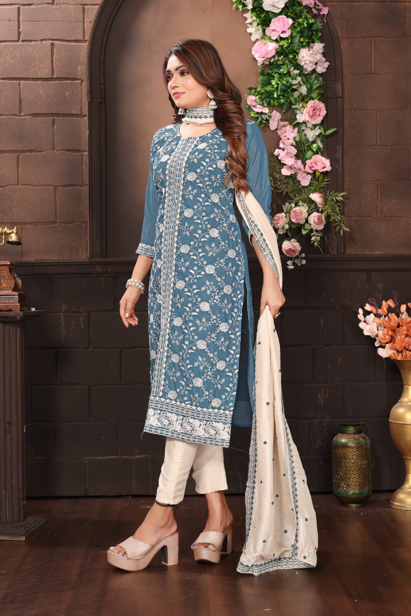 Drape yourself in the timeless elegance of Serwani-e-Vichitra, a kurti that redefines ethnic sophistication. Made from luxurious Vichitra fabric and adorned with rich, detailed embroidery, this Serwani-style kurti blends tradition with modern royalty. Its majestic silhouette and flawless craftsmanship make it a standout piece for any grand occasion.